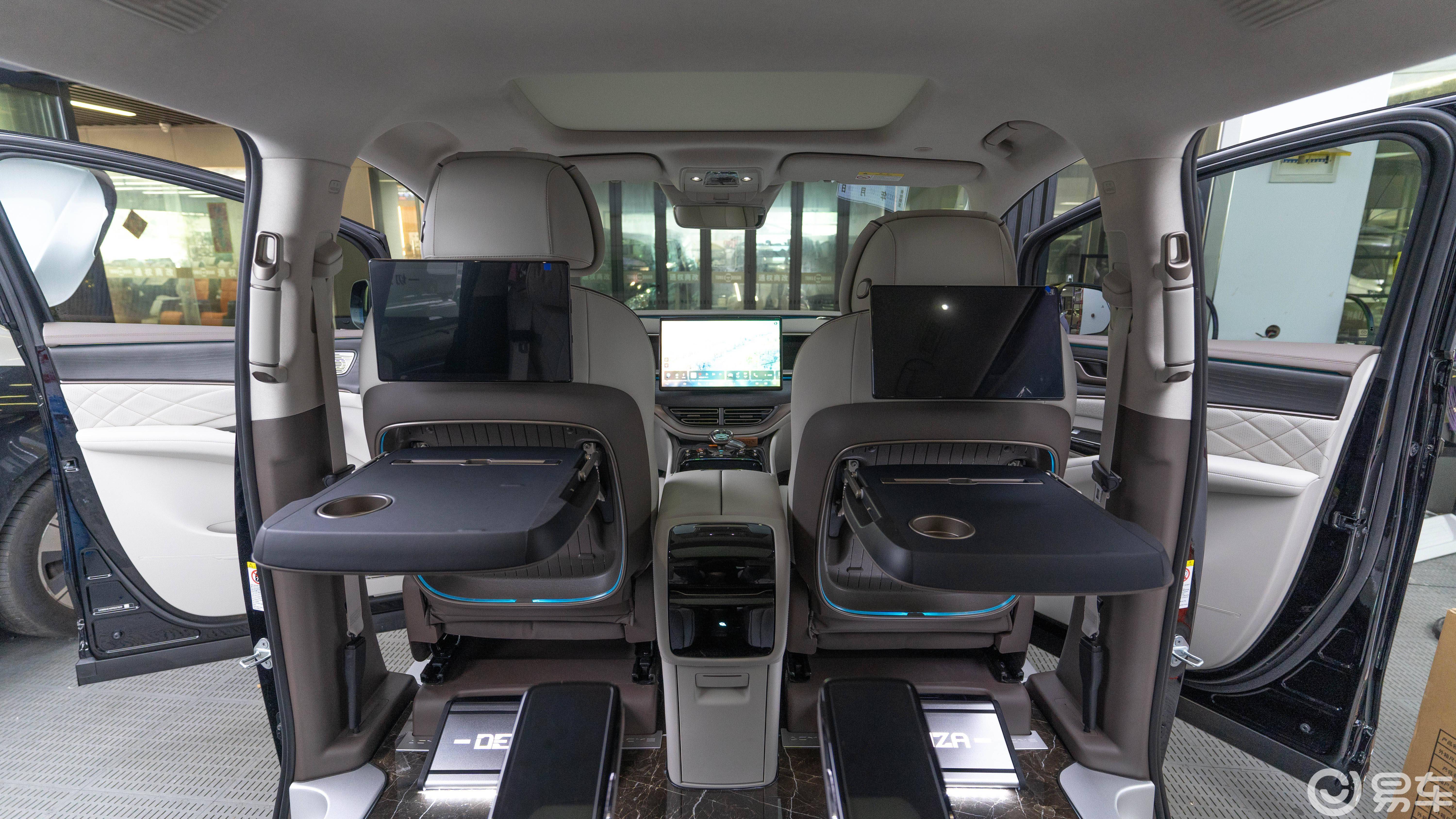 大理石纹理 + 发光 “DENZA” 中排踏板,上车仪式感拉满,关键还好打理!咖啡、泥沙一擦净,商务接待、家庭出行都稳赢~